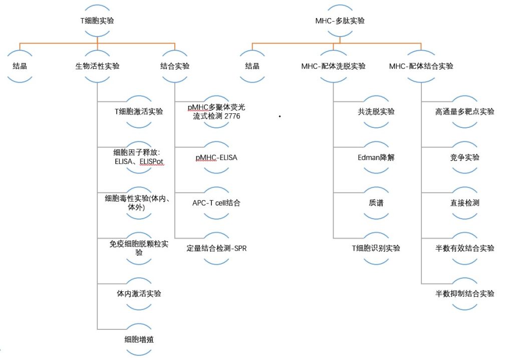 以上实验中,与细胞、临床标本有关的实验主要是“T细胞实验”-“生物活性实验”、“T细胞实验”-“结合实验”,其余实验均以单个蛋白样本为主。