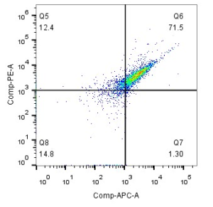实测2:测试CMV-pp65 (495-503) HLA-A*02:01 PE/APC四聚体荧光标记细胞